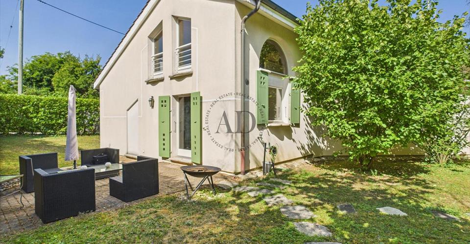 Idéalement située au coeur de Vésenaz, cette maison est très proche du centre du village, à deux pas des commodités et des transports. Bâtie sur une parcelle de 792 m2, elle propose une surface habitable d’environ 150 m2. Elle se distribue comme suit : – Hall d’entrée avec un toilette visiteurs et des rangements. – Une cuisine rénovée ouverte sur un salon et salle à manger. – 3 chambres à coucher – 2 salles de bains complètes – Une mezzanine / pièce polyvalente. Elle se complète par un grand jardin ainsi que par un couvert à voitures. Le loyer est de 6200 CHF par mois. La maison n’a pas de sous-sol.