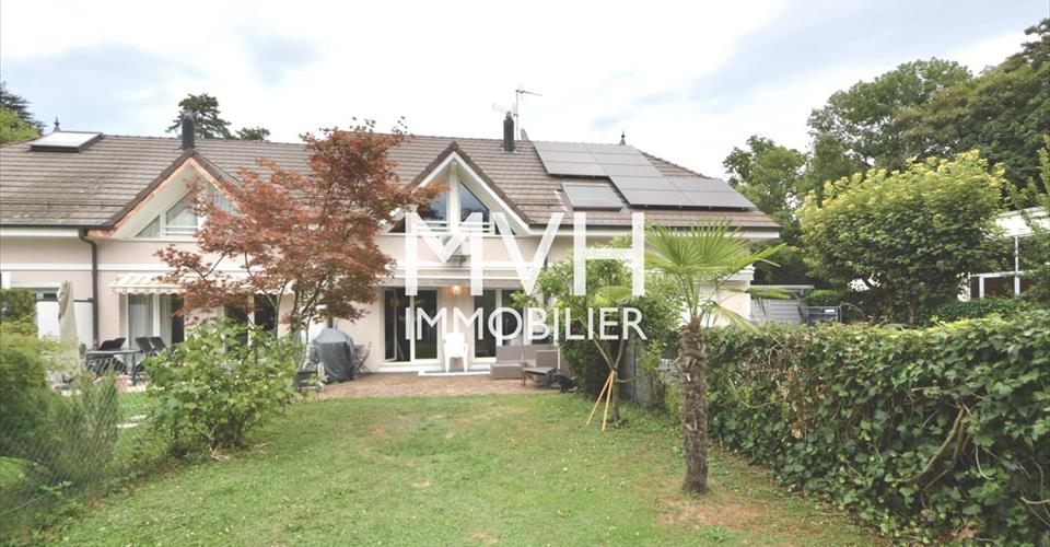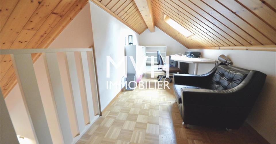 Charmante maison de 170m2 habitable avec jardin clôturé et sauna dans une zone résidentielle à proximité des commodités. Description : Rez-de-chaussée : – Hall d’entrée – Cuisine entièrement équipée ouverte sur salon – Séjour/salle à manger avec cheminée – Wc visiteurs Etage : – Trois chambres – Mezzanine – Salle de bain Sous-sol : – Une grande chambre – Salle de douche – Local de rangement – Local technique Jardin clôturé et arborisé Sauna 3 places de parking extérieur Location : CHF 5’100.-/mois Disponibilité : immédiate Contact : Jose Fracheboud 5.5-Room House Charming house of 170m2 living space with fenced garden and sauna in a residential area close to amenities. Description: Ground Floor: – Entrance Hall – Fully Equipped Kitchen Open to Living Room – Living/Dining Room with Fireplace – Guest Toilet Upstairs: – Three Bedrooms – Mezzanine – Bathroom Basement: – One Large Bedroom – Shower Room – Storage Room – Technical Room Fenced and Wooded Garden Sauna 3 Outdoor Parking Spaces Rental: CHF 5100/month Availability: Immediate Contact: Jose Fracheboud